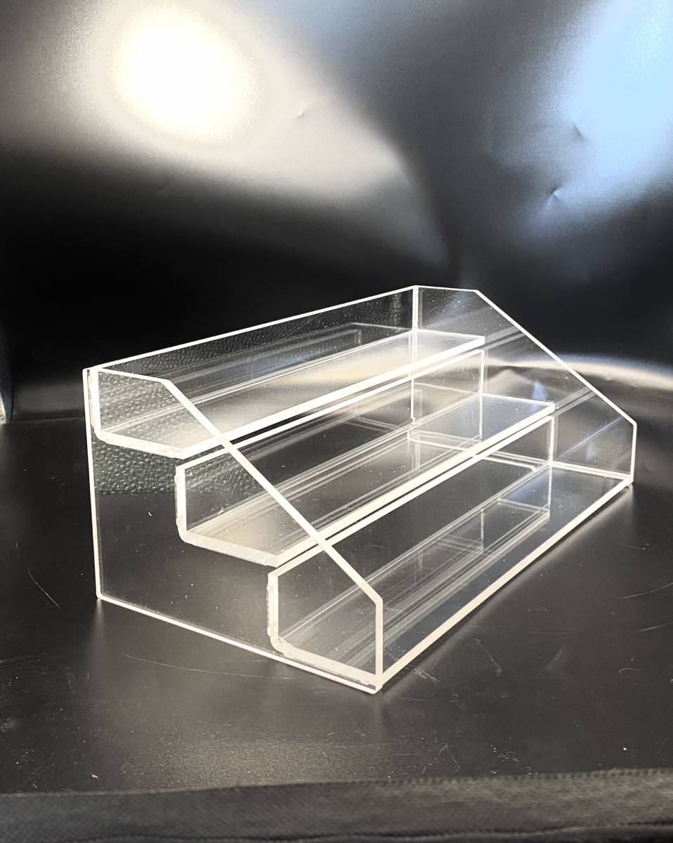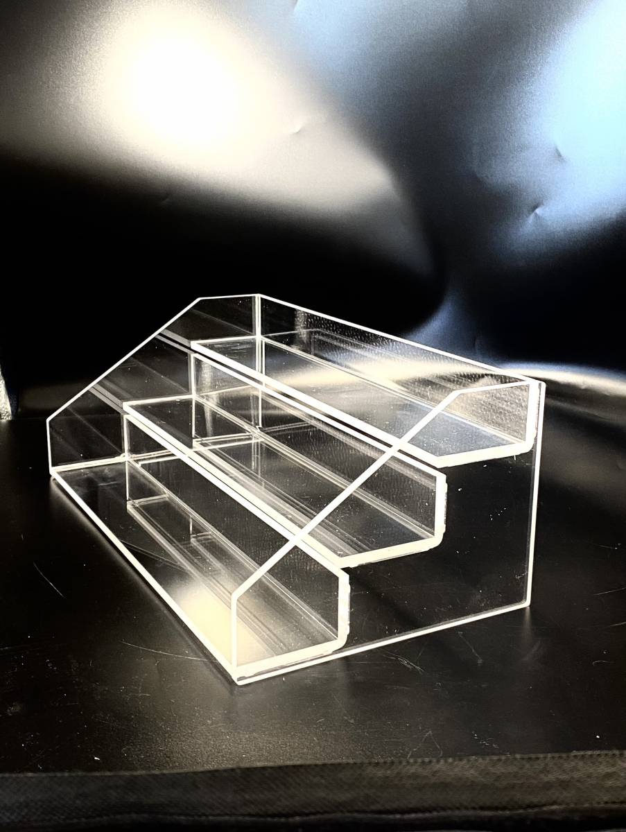 Fabriquées en PMMA (Polyméthacrylate de méthyle), ces pièces allient transparence, robustesse et esthétique. Le distributeur à gants est pensé pour un usage pratique, tandis que le présentoir, avec ses étages, est idéal pour la présentation optimisée de produits.