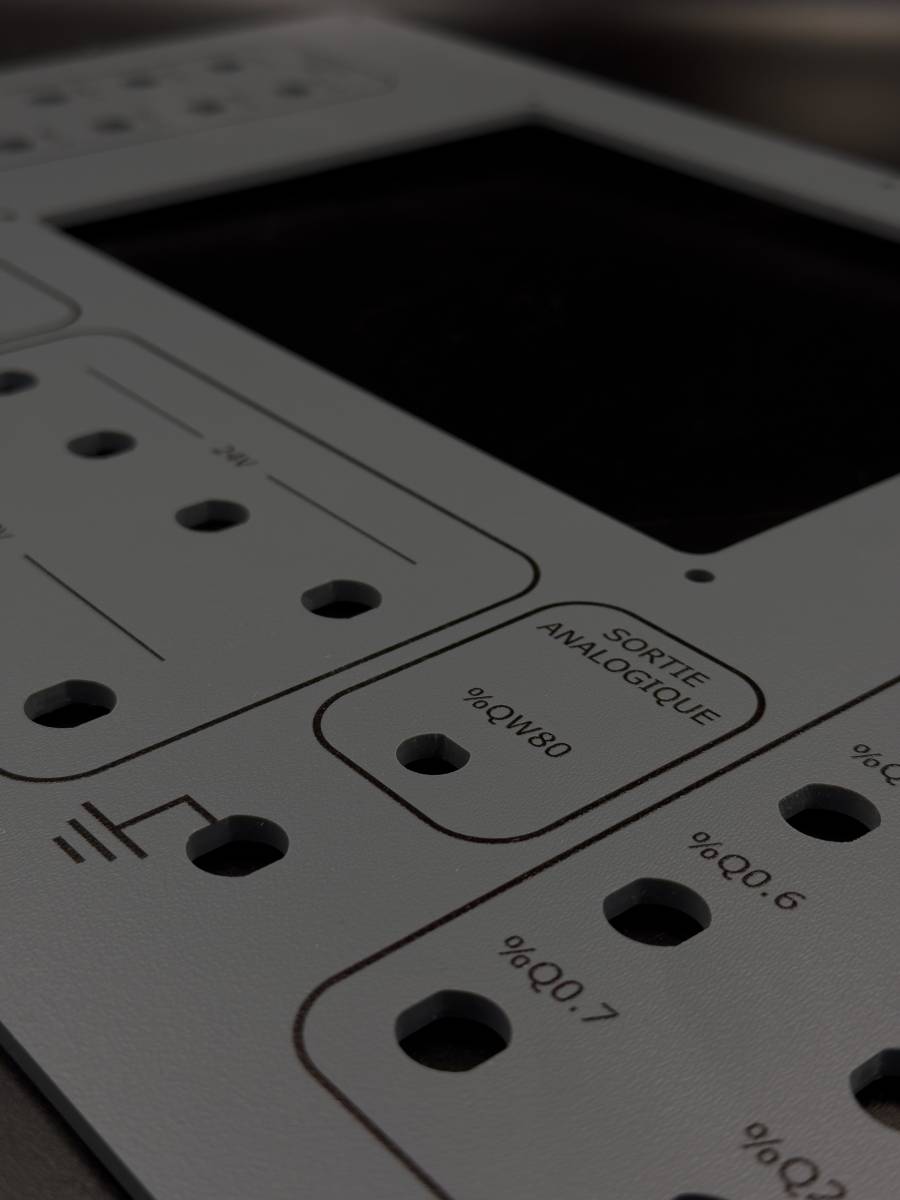 Le prototypage de face avant ne se limite pas à l'usinage. Chez ACA Plastiques & Mécaniques, nous offrons également la possibilité de personnaliser le prototype grâce à notre imprimante UV de pointe. Cette technologie permet d'imprimer directement sur le PS choc, offrant ainsi une face avant personnalisée selon les exigences spécifiques du client de Marseille, qu'il s'agisse de marquages, de logos ou d'indications techniques. La personnalisation de ces prototypes est essentielle pour valider l'esthétique et la fonctionnalité avant de passer à la production en série.
