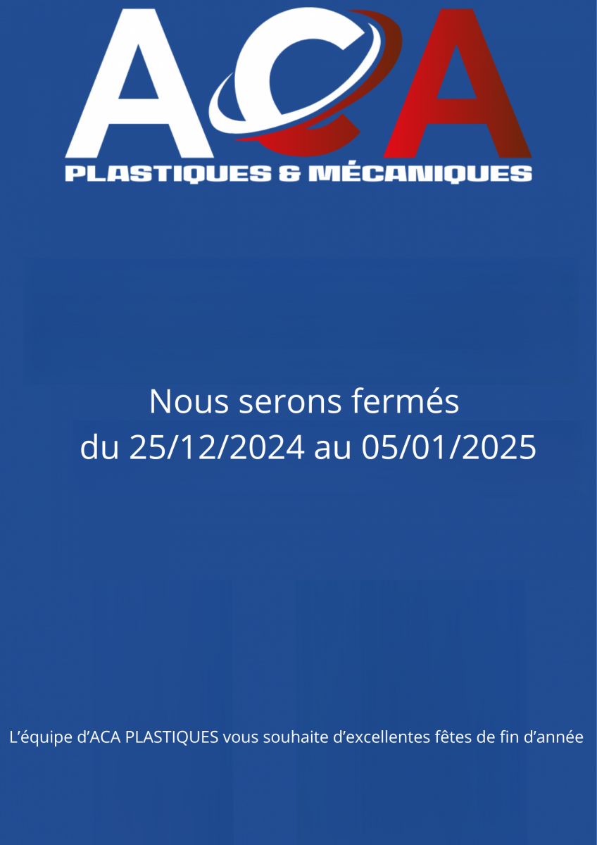 Nous vous remercions pour votre compréhension et votre confiance tout au long de cette année. Toute l’équipe d'ACA Plastiques vous souhaite d’excellentes fêtes de fin d’année et une très belle année 2025.